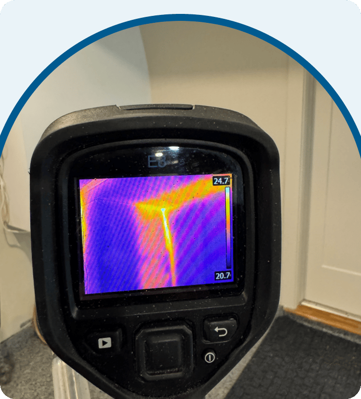 In some cases, we use our thermal imaging gear to detect air leakage. Remember that air leakage is invisible to the eye. It only becomes visible when the utility bill comes knocking on your door… or when Aeroseal comes to the rescue!